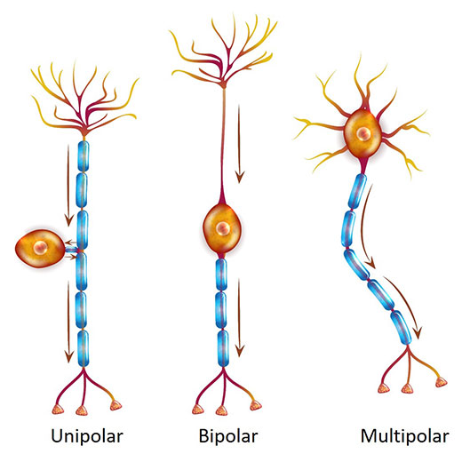 Eine Möglichkeit der Klassifizierung von Neuronen besteht darin, sie anhand der Gesamtzahl ihrer Neurite (Axone und Dendriten, die vom Soma entspringen) einzuordnen. Es handelt sich demnach um eine morphologische Differenzierung.