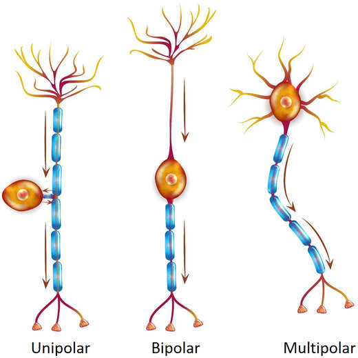 Zellen lassen sich anhand verschiedener Merkmale klassifizieren. Eine Möglichkeit der Klassifizierung von Neuronen besteht darin, sie anhand der Gesamtzahl ihrer Neurite (Axone und Dendriten, die vom Soma entspringen) einzuordnen. Es handelt sich demnach um eine morphologische Differenzierung (Abbildung 5).